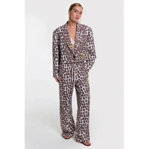 Wijde broek, gemaakt van een soepelvallende pakstof. Voorzien van een all-over animal dessin. Ontworpen met een “A the label”-artwork onder de zak. Combineer met de bijpassende blazer voor een complete look. kleur: animal Materiaal: 74% Polyester / 22% Viscose / 4% Elastane Het model is 172cm en draagt maat S