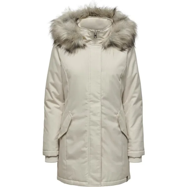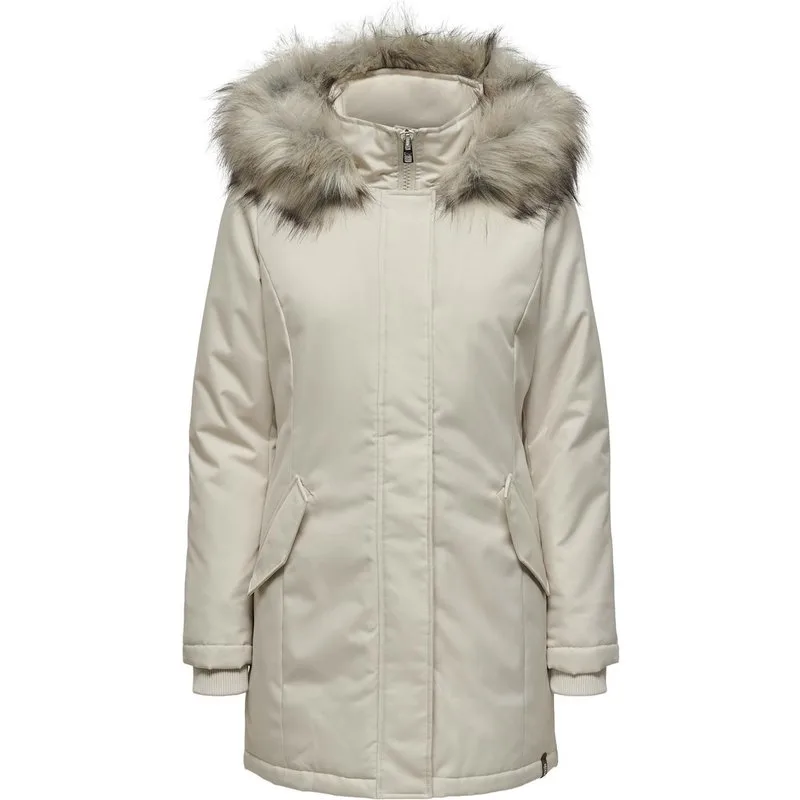 Deze warme parka voor dames is de ideale metgezel voor koude dagen. De blinde ritssluiting met drukknoopsluiting biedt betrouwbare bescherming tegen de wind, terwijl de hoge kraag en capuchon met afneembare rand van imitatiebont extra warmte bieden. Klepzakken met drukknopen bieden niet alleen veilige opbergruimte, maar onderstrepen ook het functionele ontwerp. Geribde boorden aan de binnenkant van de mouwen houden de kou buiten en zorgen voor extra comfort. De parka is warm gevoerd zodat je zelfs op ijskoude dagen goed beschermd bent. Een discreet label op de zoom rondt de look in stijl af. Een hoog draagcomfort is gegarandeerd, of je nu in de stad bent of buiten.