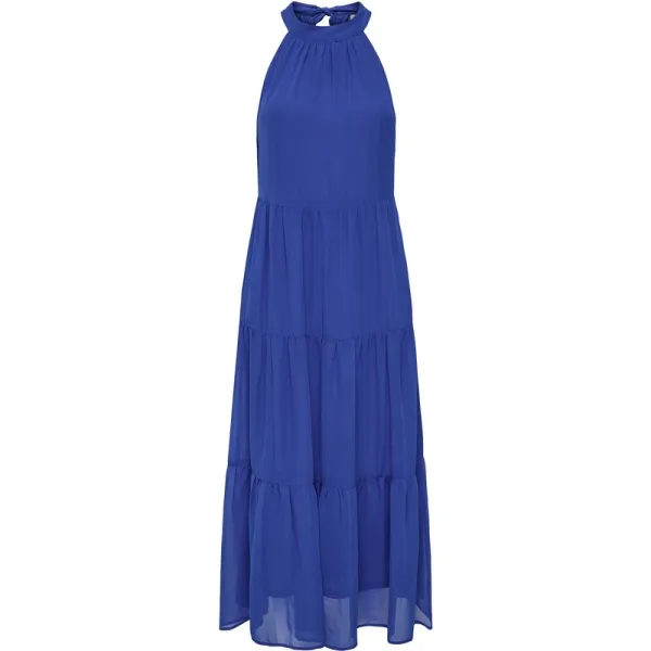 Dit enkellange zomerjurk begeleidt je stijlvol door zonnige dagen. Met zijn mouwloos halterontwerp en de ronde halslijn, die in de nek met een schattige strik wordt gebonden, zorgt het voor een luchtige, speelse look. De meerlagige stof valt losjes en is daarbij niet doorschijnend – ideaal om je prettig te voelen en te spelen. Een fijne rolzoom en discrete merkdetails ronden het ontwerp af. Of je nu op vakantie bent, een ijsje eet of op een tuinfeest bent – in deze jurk ben je altijd zomers mooi gekleed.