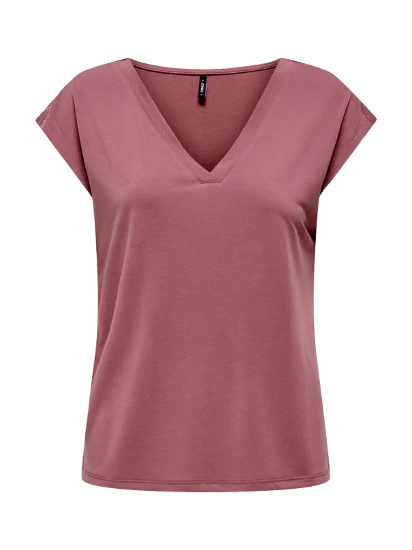 Dames T-shirt van Only;Model 'Free';Look: effen;Pasvorm: Loose Fit;Hals: V-hals;Mouwvorm: korte mouw;Materiaal: modal-mix