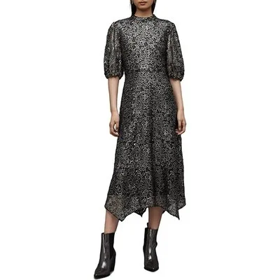 AllSaints Camila Broderie Dres Gunmetal Grey