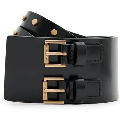 AllSaints Elodie Double Belt Patent Black/brass