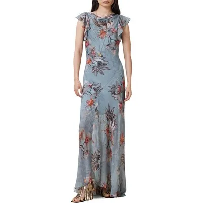 AllSaints Flora Dress Adena Dusty Blue Prijzen