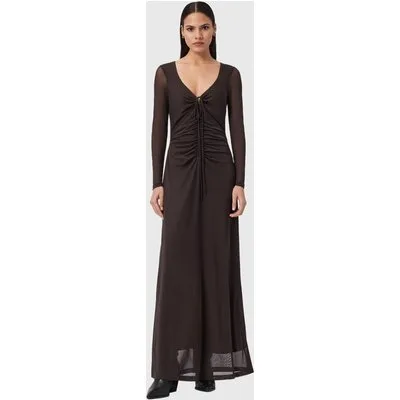 AllSaints Gabby Ls Mesh Dress Bottle Brown