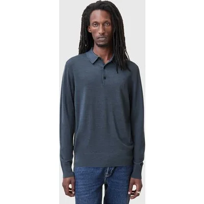 AllSaints Mode Merino Ls Polo Pitched Blue