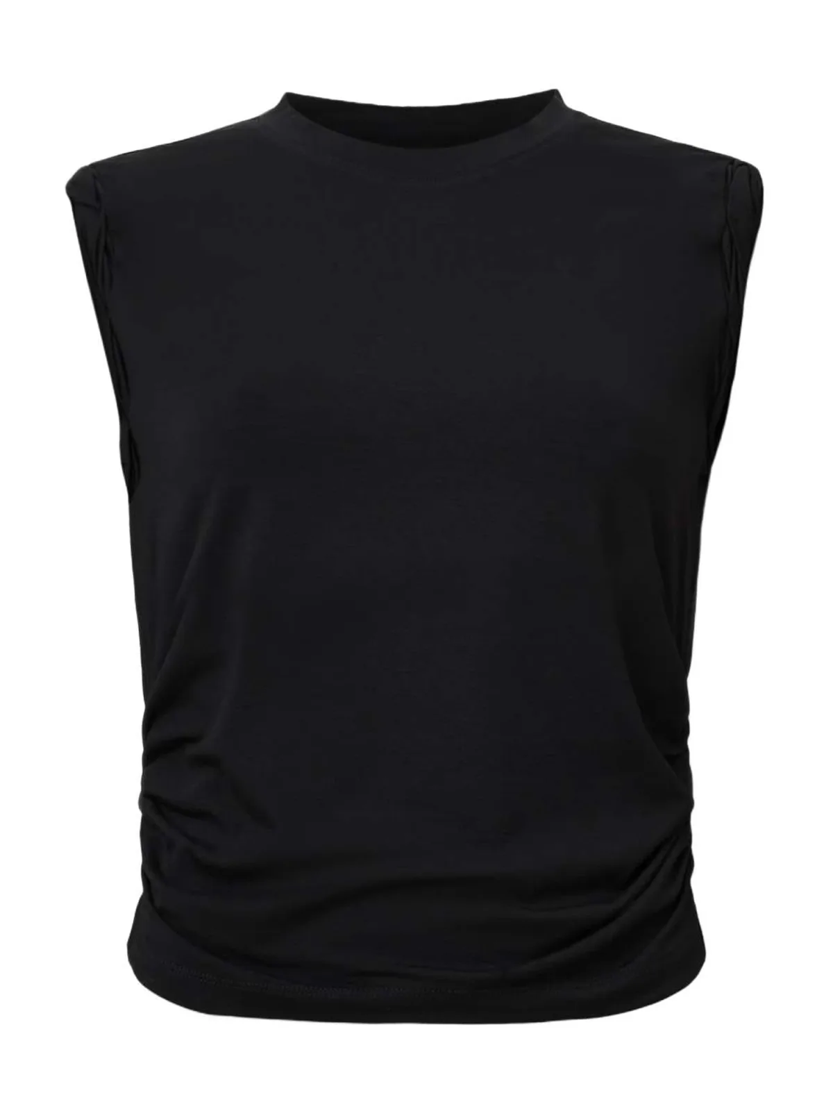 Design: Gevoerde zoom/rand, Rechte zoom; Materiaal: Jersey; Halstype: Ronde hals; Motief: Effen; Details: Gedrapeerd; Extra's: Op staal naden, Voelt zacht aan; Pasvorm: Normale pasvorm; Armlengte: Mouwloos; Lengte: Normale lengte
