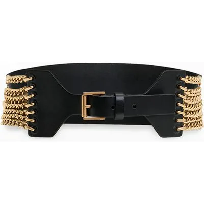 AllSaints Zora Chain Wide Belt Black/warm Brass