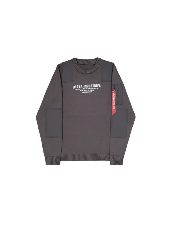 Met de Military Knit Sweater van Alpha Industries uit de Knitwear-collectie in regular fit houd je een echt stuk militaire geschiedenis in handen. De opvallende print op de borst geeft de trui karakter, terwijl de onmisbare utility pocket met het iconische RBF-tag de functionele oorsprong benadrukt. Draag hem met trots en combineer tijdloze stijl met praktische functionaliteit.