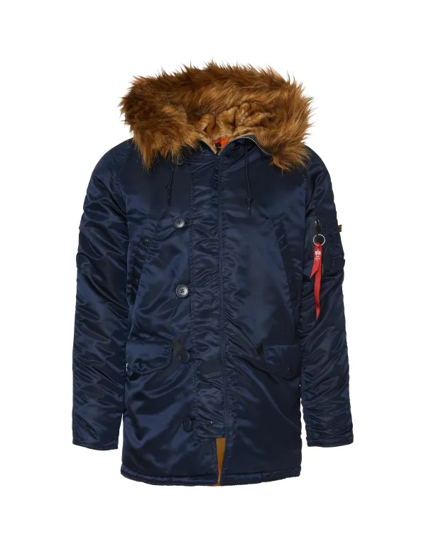 ALPHA INDUSTRIES Winterjas ‘N3B VF 59’ donkerblauw / bruin / knalrood / wit