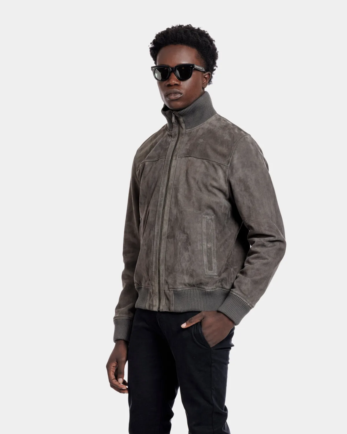 Een elegant, eenvoudig bomberjack van topkwaliteit gemaakt van eersteklas geitensuède. De kraag, manchetten en taille hebben een geribbeld effect voor een luxueuzere uitstraling. Het jack heeft twee steekzakken en sluit met een eenvoudige rits.