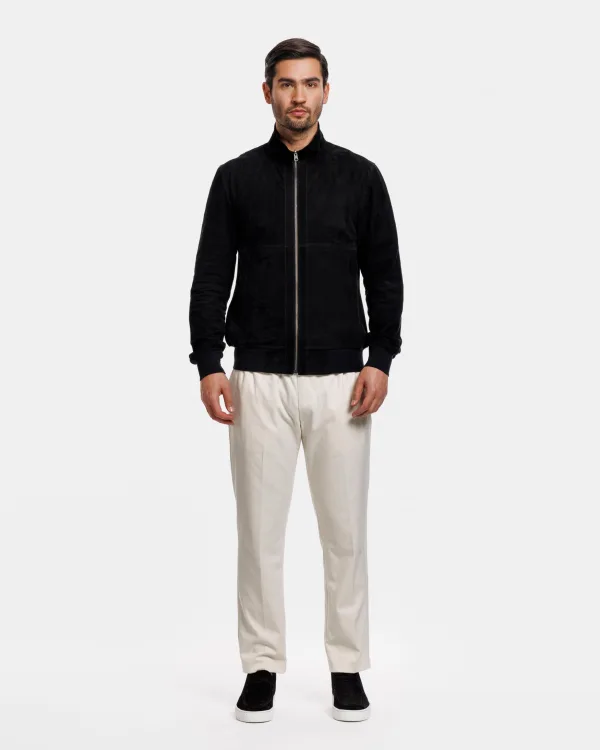 Een elegant bomberjack van eersteklas zacht geitensuède voor een extra vleugje klasse en klasse. Het jack is volledig omkeerbaar en heeft zakken aan beide kanten. De manchetten en taille hebben een fijn geribbeld effect voor een luxueuzere uitstraling.