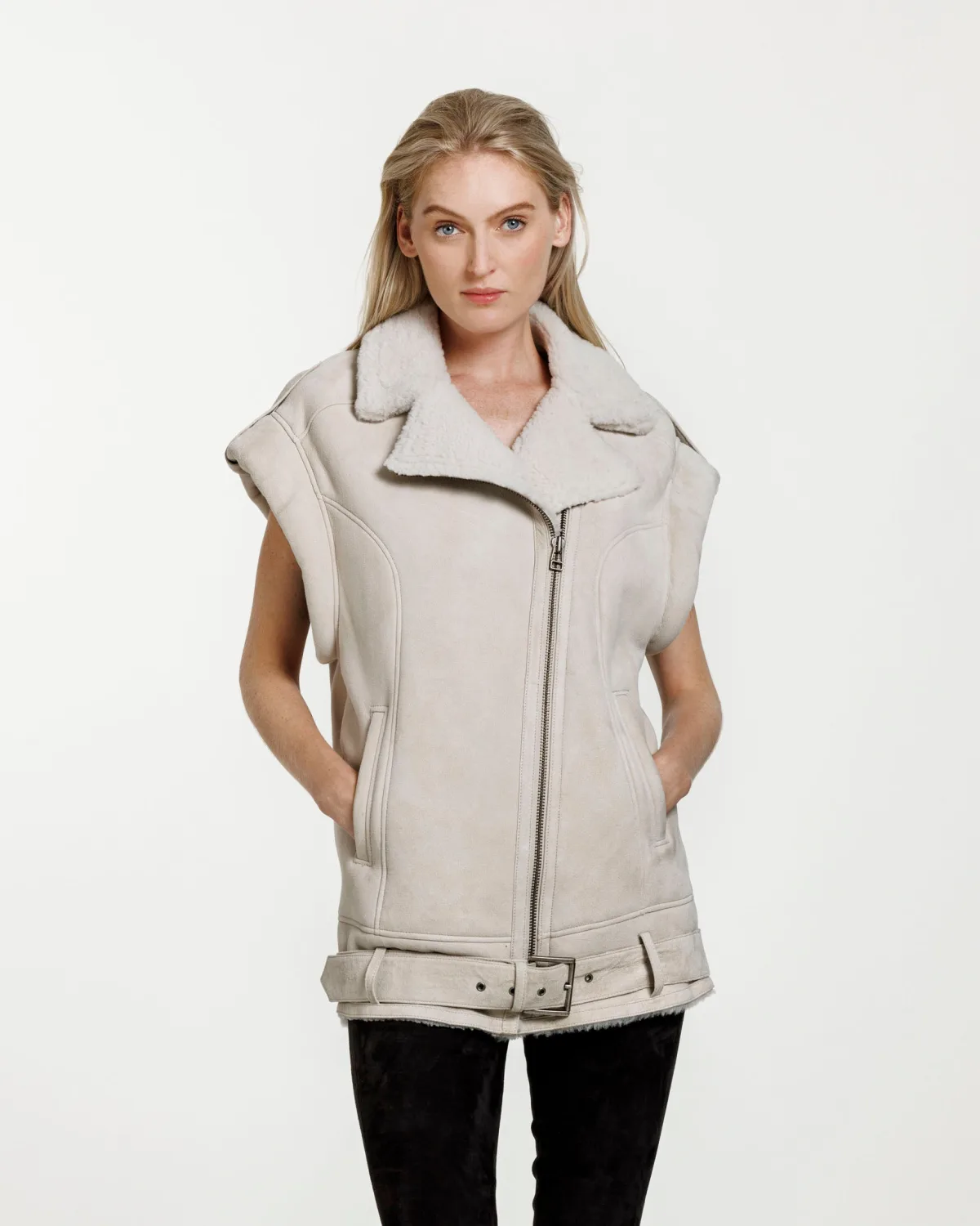 Een chique en stijlvolle bodywarmer met alle juiste details. De jas heeft zakken aan beide zijkanten, een schuine ritssluiting, schouderbanden en een ingebouwde riem die naar wens vastgemaakt of losgelaten kan worden.