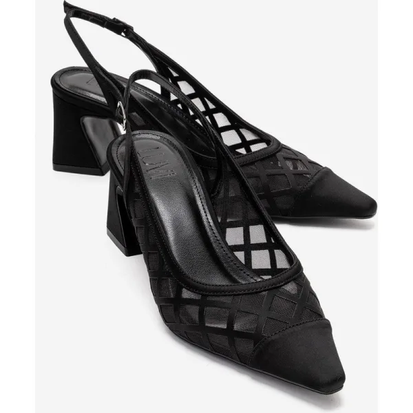 Een verfijnde pump die zachte elegantie combineert met grafische meshtexturen