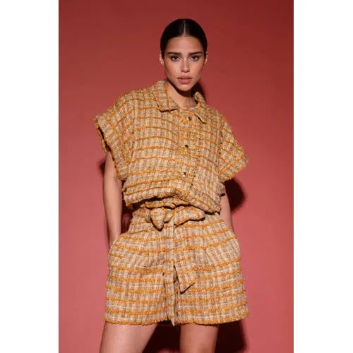 Ontdek de veelzijdigheid van de EMMA GILET van AMAYA AMSTERDAM. Deze camel blazer is perfect voor dames die houden van co-ord sets. Ideaal voor een ontspannen picknick in het park of een stijlvolle brunch met vriendinnen. Combineer met een luchtige witte blouse en een lichte linnen broek voor een frisse lente- of zomerlook. De zachte tint van de gilet maakt het eenvoudig te mixen en matchen met andere seizoensfavorieten. Of je nu een dagje gaat shoppen of een middag op het terras doorbrengt, met de EMMA GILET ben je altijd stijlvol en comfortabel gekleed.