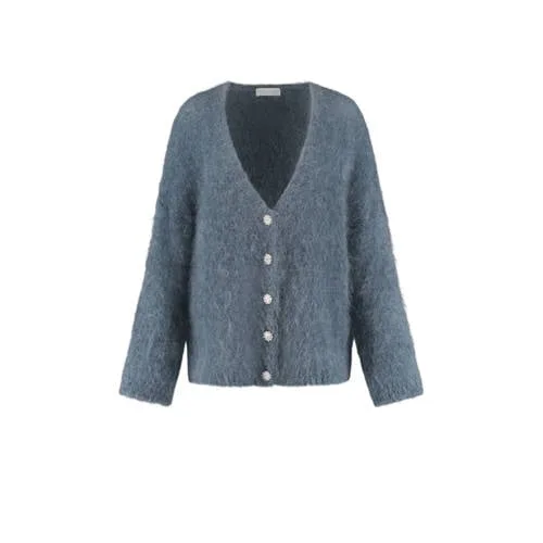 Dit AMAYA Amsterdam vest heeft een V-hals en rechte mouwen. Het model ROOS is gemaakt van mohair en sluit met knopen. Dit vest heeft een kleur, zo kun je alle kanten op.