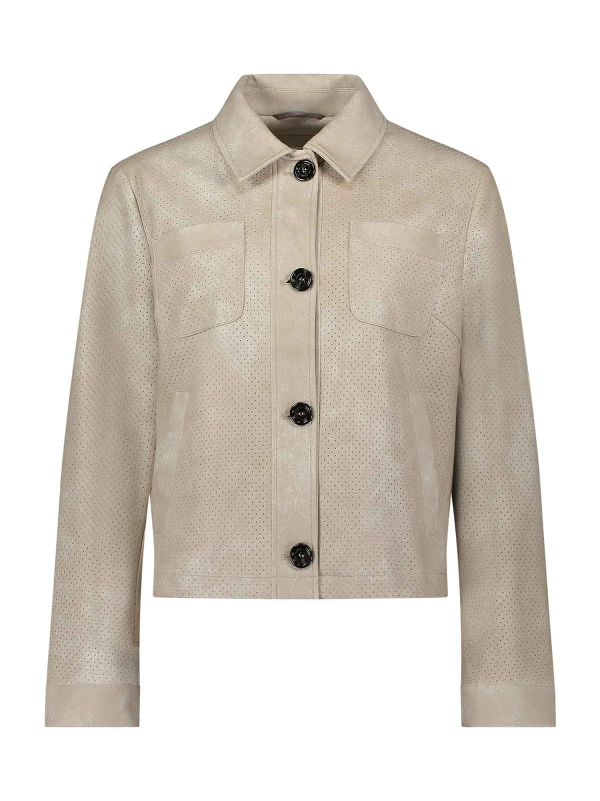 Dames jack van Amber & June;Lederlook;regular fit;platte kraag;borstzakken;Doorlopende knoopsluiting;ruglengte bij maat 36: 54 cm;schouderbreedte bij maat 36: 42 cm;borstwijdte bij maat 36: 52 cm;Mouwlengte bij maat 36: 63 cm