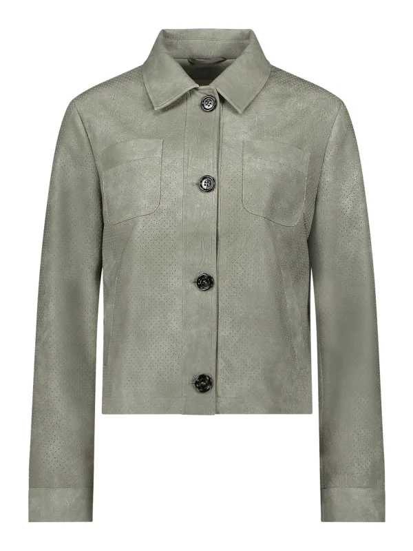 Dames jack van Amber & June;Lederlook;regular fit;platte kraag;borstzakken;Doorlopende knoopsluiting;ruglengte bij maat 36: 54 cm;schouderbreedte bij maat 36: 42 cm;borstwijdte bij maat 36: 52 cm;Mouwlengte bij maat 36: 63 cm
