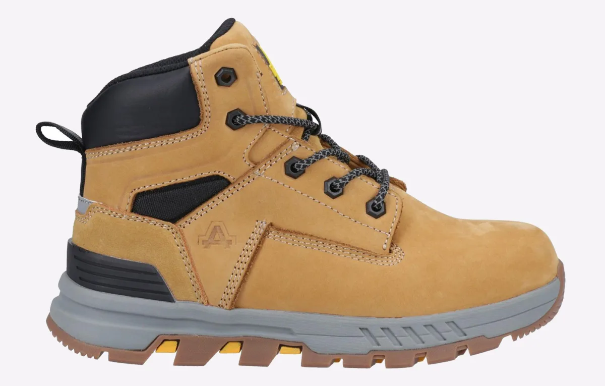 Amblers Safety presenteert deze lichtgewicht dames veiligheidsschoenen, ontworpen met een waterafstotende bovenkant, een diep gepolsterde enkelkraag, een gevoerd voetbed en een EVA-tussenzool. - Waterafstotende volnerf nubuck en Crazy Horse leren bovenkant - Vervormde TPU hielchassis voor verbeterde ondersteuning - Reflecterende veters en contrapaniel voor extra zichtbaarheid - Diep gepolsterde PU-kraag voor extra comfort - Comfortabel, gevoerd en uitneembaar PU-voetbed - Lichtgewicht atletische EVA-tussenzool - Schokabsorberende tussenzool - Kwaliteitsrubberen buitenzool met technisch profiel voor grip - Niet-markerende rubberen buitenzool - Buitenzool hittebestendig tot 300 graden - Oliebestendige buitenzool