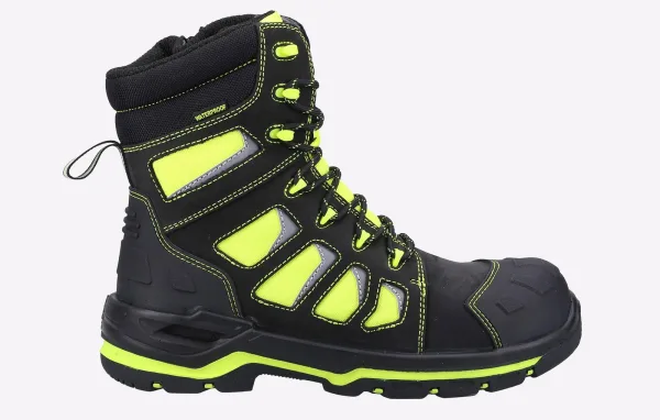 Hi-Leg Metalen Vrije Hi-Vis Veiligheidsboot met YKK-zijrits is ontwikkeld om alle soorten industrieën aan te pakken onder de meest ongunstige omstandigheden. Hi-Vis fluorescerend waterdicht Cordura zorgt voor maximale zichtbaarheid, ongeacht het tijdstip van de dag. - Metalen Vrije Boot met Gele Veiligheid Hi-Vis Waterdicht CORDURA- Waterbestendige Volnerf Nubuckleren Bovenwerk- Interne Waterdichte Membrane- Gevormde TPU Neusbescherming voor Extra Duurzaamheid- Gevormde TPU Hielsteun voor Verbeterde Hielondersteuning en Bescherming- Reflecterende Bies en Lusst voor Maximale Zichtbaarheid- Diepe Gevoerde Mesh Kraag voor Extra Comfort- YKK Zijrits voor Gemakkelijke Toegang- Comfortabele, Gevoerde en Verwijderbare PU Voetbed- Ingezette PU Tussenzool Verhoogt Comfort en Schokabsorptie