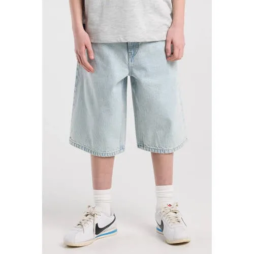 Deze lichtblauwe denim short van America Today is een praktische basis voor elke dag. De korte broek voor jongens heeft een baggy fit, waardoor er genoeg bewegingsruimte is om te rennen, fietsen en spelen. De jorts-look past goed bij de urban stijl en is makkelijk te combineren met T-shirts, hoodies of een casual overhemd.Denim short met relaxte fit Baggy fit voor een comfortabele, losse pasvorm Gemaakt van 100% katoen voor een stevige en toch soepele feel Klassiek 5-pocket design, handig voor kleine spullen Elastiek aan de binnenkant van de tailleband voor extra comfort Rits- en knoopsluiting voor een vertrouwde jeanslook Lichtblauwe 'light blue denim' kleur, makkelijk te combinerenIdeaal voor school, vrije tijd en vakantieDeze denim short past goed bij de dagelijkse garderobe van schoolkinderen en tieners. De baggy pasvorm geeft een ontspannen uitstraling en zit niet strak, zodat bewegen tijdens drukke dagen vol activiteiten eenvoudig blijft. De short is makkelijk te stylen met sneakers en een T-shirt voor school, of met een sweater voor koelere dagen.America Today voor een casual lifestyleAmerica Today staat bekend om casual kleding met een ontspannen, moderne uitstraling. De collecties zijn geïnspireerd op het dagelijkse stadsleven en richten zich op comfortabele items die lang meegaan. Met deze short kies je voor een casual stijl die past bij een actieve, jonge levensstijl.Een stevige denim basic die geschikt is voor het hele seizoen.
