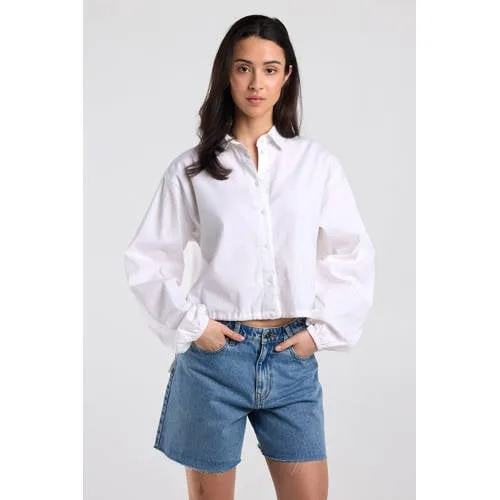 Deze ecru blouse van America Today is een lichte, moderne basic voor elke dag. De luchtige mix van 65% katoen, 33% linnen en 2% elasthaan voelt soepel aan en volgt je bewegingen prettig. Door de cropped lengte komt deze linnen blouse voor dames mooi uit boven een high waist jeans of een rechte broek. De klassieke kraag en knoopsluiting geven een rustige, cleane look die makkelijk te combineren is.Doordachte details voor dagelijks draagplezier Gemaakt van 65% katoen, 33% linnen en 2% elasthaan voor een luchtige, comfortabele touch Ecru kleur met effen dessin, ideaal als basis in je garderobe Cropped lengte voor een moderne pasvorm Klassieke kraag en volledige knoopsluiting aan de voorkant Trekkoord in de onderzoom om de wijdte subtiel aan te passen Elastiek in de lange mouwen bij de boorden voor een nette, licht bloezende sleeve Rechte mouwen en geen zakken voor een rustige belijning Geschikt voor het voorjaar en dagelijks gebruik binnen de Daily en Rebel collectieCasual styling voor elke dagDeze blouse draag je ontspannen op een high waist jeans met sneakers, of in combinatie met een rechte chino en loafers. Door het trekkoord kun je de zoom wat strakker trekken voor een cropped, sportieve uitstraling of juist losjes laten voor een relaxte fit.America Today: moderne classics met een casual twistAmerica Today staat bekend om kleding met een herkenbare, American casual stijl. De collecties bestaan uit toegankelijke items die je makkelijk combineert en seizoen na seizoen uit de kast pakt. Zo voeg je met deze blouse een betrouwbare basic toe aan je dagelijkse garderobe.Een lichte blouse die je snel uit de kast pakt voor een ontspannen, maar verzorgde look.