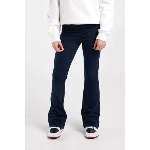 De America Today Cira Jr legging is een fijne basic voor elke dag. Deze donkerblauwe meisjesbroek combineert het gemak van een legging met de uitstraling van een flared broek. De hoge taille en uitlopende pijpen zorgen voor een moderne look, terwijl de zachte stof met stretch prettig meebeweegt tijdens schooldagen, speelafspraken en relaxmomenten thuis.Details die elke dag fijn maken Hoge taille voor een comfortabele en veilige pasvorm rond de buik Flared pijpen met omslagdetail voor een eigentijdse, speelse look Zachte stof gemaakt van vijfennegentig procent katoen en vijf procent elastaan, voelt soepel aan op de huid Elastische tailleband, makkelijk aan en uit te trekken zonder sluiting Lang model zonder zakken, valt strak op het bovenbeen en loopt uit vanaf de knie Effen donkerblauwe kleur, goed te combineren met T-shirts, truien en blousesIdeaal voor school en vrije tijdDeze casual meisjesbroek is gemaakt om vaak te dragen. De rekbare stof geeft veel bewegingsvrijheid tijdens rennen, fietsen of spelen, terwijl de hoge taille goed blijft zitten. De legging is makkelijk te combineren met sneakers en een hoodie voor een sportieve look of met een mooi topje voor een meer geklede outfit.America Today voor jonge trendliefhebbersAmerica Today staat bekend om comfortabele kleding met een relaxte, moderne stijl. De collecties sluiten aan op het dagelijks leven, waarin kleding handig, draagbaar en toch eigentijds mag zijn. Met deze Cira Jr legging kies je voor een broek die past bij een actieve dag én bij de laatste trends.Een veelzijdige legging waar je kind zich de hele dag prettig en vrij in kan bewegen.