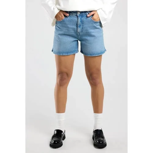 De denim short voor dames Nevea van America Today is een praktische basis voor zonnige dagen. De korte broek heeft een high waist die in de taille aansluit en een regular fit langs de benen. De medium blue wassing geeft een klassieke denimlook, terwijl de subtiele split aan de zijkant zorgt voor extra bewegingsvrijheid en een eigentijdse stijl.Kenmerken van de Nevea denim short High waist model dat comfortabel in de taille valt Regular fit pijpen voor een ontspannen, niet te strakke look Subtiele split aan de zijkant van de broekspijpen 5-pocket model met rits- en knoopsluiting aan de voorkant Gemaakt van 99% katoen en 1% elasthaan voor een stevige stof met lichte stretch Medium blue denim kleur die makkelijk combineert met tops en T-shirtsEen korte broek voor zomerse dagenDeze denim short is geschikt voor allerlei zomerse momenten. De high waist combineer je eenvoudig met een kort T-shirt of een luchtige blouse, en de short past ook goed onder een losvallende trui op koelere avonden. De stevige denimstof met een beetje stretch blijft goed zitten, of je nu in de stad loopt of op een terras zit.America Today: geïnspireerd door de campusstijlAmerica Today haalt inspiratie uit de relaxte Amerikaanse campusstijl. Het merk staat bekend om casual kleding met een sportieve knipoog, ontworpen voor dagelijks gebruik. Met de Nevea short voeg je een denim basic toe aan je garderobe die je het hele zomerseizoen kunt dragen.Een denim short die je eenvoudig combineert voor elke zonnige dag.