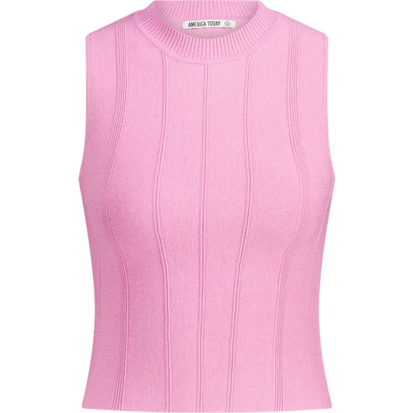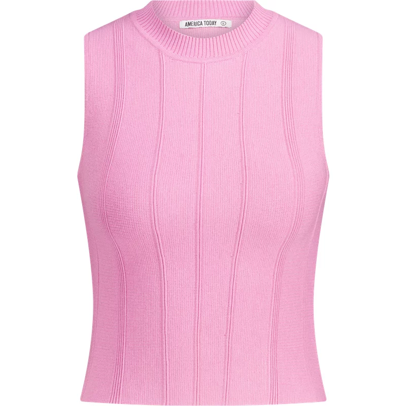 Deze America Today Gigi knitted top zonder mouwen heeft een hoge kraag en een stijlvol gebreid patroon. De perfecte combinatie van comfort en een trendy uitstraling. Mouwloos Hoge kraag Gebreid patroon Materiaal: Viscose / Kleur: Soft Pink / Levertijd: Op werkdagen voor 20.00 besteld, morgen in huis.