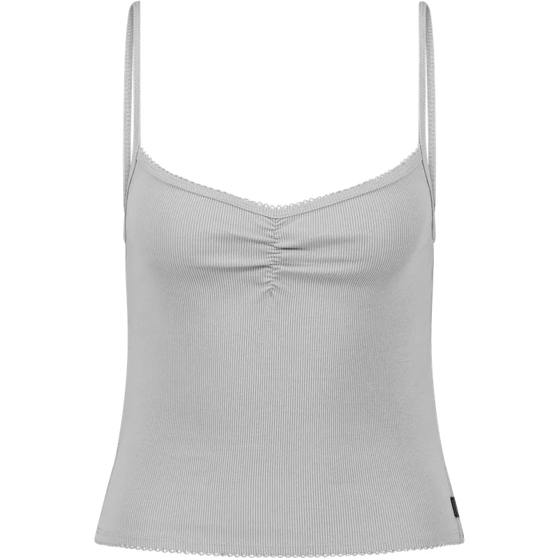 Deze America Today Gillian top heeft een aangesloten pasvorm en is afgewerkt met verfijnde kanten details. Dankzij de verstelbare bandjes en het zachte, elastische materiaal is dit een vrouwelijke basic die perfect is om los te dragen of onder een blouse. • Aangesloten pasvorm • Verstelbare bandjes • Fijne kanten details • Zacht en rekbaar materiaal Materiaal: Katoen / Kleur: Light grey melange / Levertijd: Op werkdagen voor 20.00 besteld, morgen in huis.