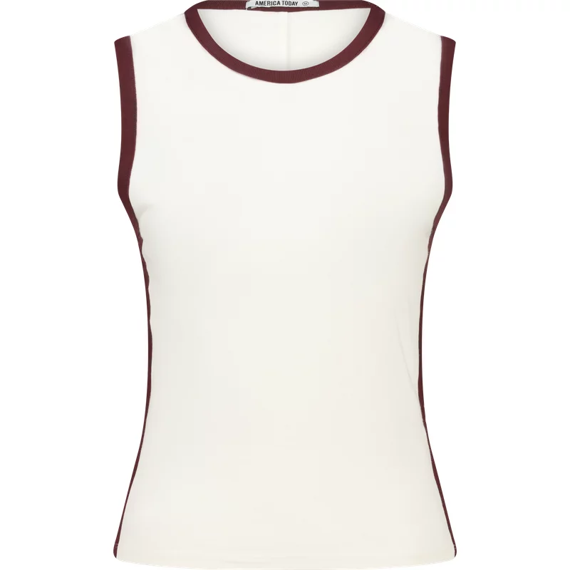Deze America Today Glory mouwloze top is een sportieve basic met een moderne twist. De top heeft contrasterende ribboorden langs de hals en armsgaten en een slim fit pasvorm die mooi aansluit op het lichaam. • Mouwloos model • Contrasterende ribboorden • Slim fit • Zachte stretchstof Materiaal: Katoen / Kleur: Off white / Levertijd: Op werkdagen voor 20.00 besteld, morgen in huis.