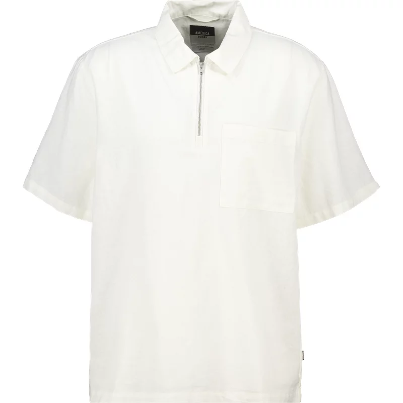 Deze America Today Ike shirt is gemaakt van een linnenmix en heeft een regular fit voor een luchtige en comfortabele pasvorm. Voorzien van een halve rits, korte mouwen en een borstzak, perfect voor een stijlvolle zomerse look. Linnenmix Regular fit Halve rits Korte mouwen Borstzak