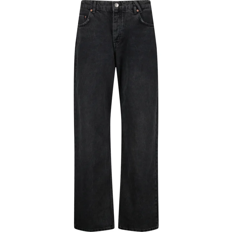 Deze damesjeans van America Today heeft een low waist en komt in de kleur washed black. Gemaakt van 100% katoen. De jeans heeft een oversized fit en sluit met een knoopsluiting.