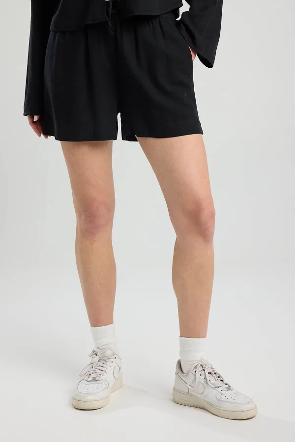 America Today linnen regular waist casual short zwart