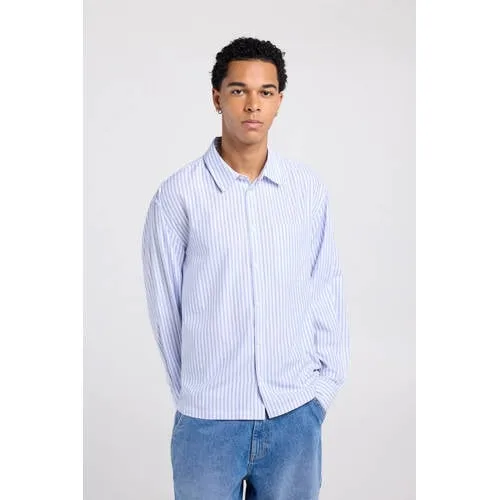 America Today loose gestreepte casual overhemd blauw
