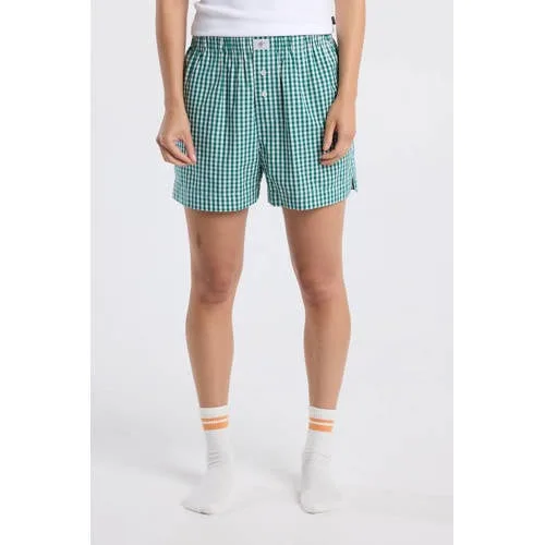 Deze korte broek van America Today heeft een regular fit en elastische tailleband. Dit model is gemaakt van 100% katoen en heeft zijzakken, de kleur is groen met wit. Fijn voor elke dag.