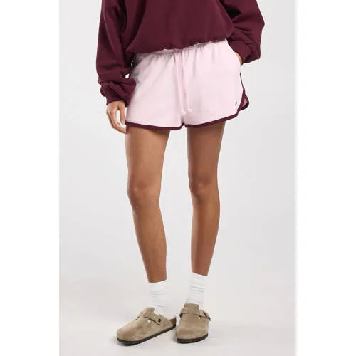 De America Today Naima short is een lichte sportshort in zacht lichtroze die beweging makkelijk maakt. Het korte model valt soepel rond je benen, terwijl de contrasterende bies langs de zijkant direct zorgt voor een sportieve look. Ideaal voor trainingen in de zaal of buiten, maar ook prettig om gewoon in te ontspannen.Sportieve short met doordachte details Lichtroze kleur met contrastbies voor een opvallende, sportieve uitstraling Regular waist en regular fit voor een comfortabele pasvorm rond taille en heupen Kort model dat veel bewegingsvrijheid geeft bij benen en heupen Gemaakt van een katoenen kwaliteit die zacht aanvoelt op de huid Handige zijzakken voor een sleutel, pasje of kleine essentials Geschikt voor verschillende sporten zoals fitness, yoga, hardlopen en zaalsportKlaar voor elke trainingOf je nu een rondje gaat hardlopen, een yoga les volgt of in de sportschool staat, deze short beweegt makkelijk met je mee. De regular taille blijft prettig zitten tijdens lunges, squats of stretches. In de zijzakken is plaats voor kleine spullen die je graag bij je houdt onderweg.America Today sportstijlAmerica Today staat bekend om casual kleding met een sportieve twist, geïnspireerd op de Amerikaanse campusstijl. De collecties zijn ontworpen om comfortabel te dragen in het dagelijks leven en tijdens je workout. Met deze Naima short haal je een betrouwbare basic in huis die je training en vrije tijd net wat relaxter maakt.Een veelzijdige sportshort waarmee je zonder moeite schakelt tussen sporten en relaxen.