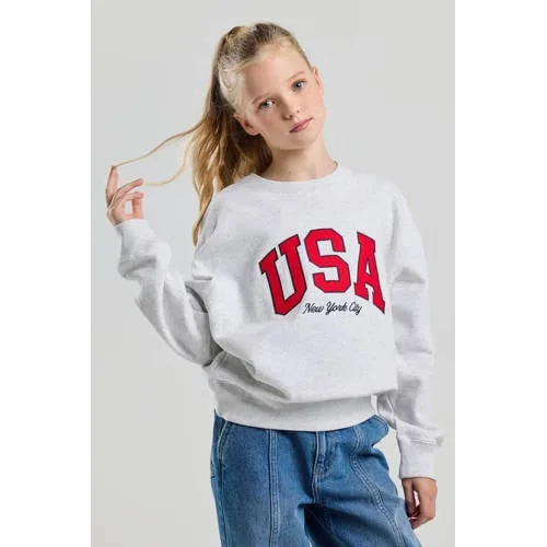 Deze America Today sweater voor meisjes heeft een ronde hals en lange mouwen. Gemaakt van sweat materiaal met een mix van katoen en polyester. Een comfortabele keuze voor dagelijks gebruik. Geen zakken voor een strakke uitstraling.