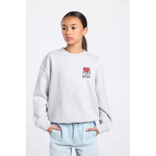 Deze America Today sweater heeft een hals en mouwen. De sweater heeft een print op de borst en rug. Met het Keith Haring ontwerp draag je dansende figuren met hart op je sweater. Geribde boorden zitten langs de randen.