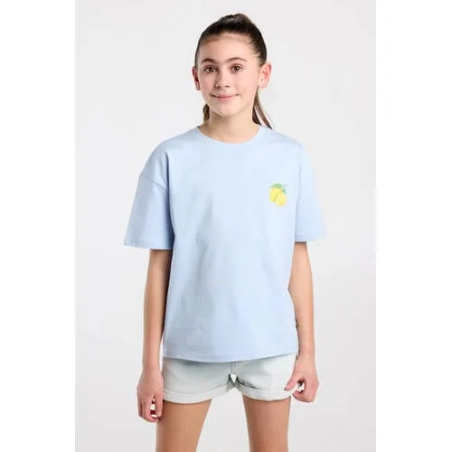 Fris, speels en klaar voor elke dag, dit katoenen T-shirt voor meisjes van America Today is een praktische basic met een stoere uitstraling. Het shirt heeft een ronde hals, korte mouwen en een comfortabele, rechte pasvorm. De zachte babyblue kleur krijgt extra karakter door het geprinte artwork op de borst en op de rug, waardoor elke outfit meer eigenheid krijgt.Details die elke dag meegaan Gemaakt van 100% katoen, dat zacht aanvoelt op de huid Geprint artwork op de borst voor een subtiel accent Grote print op de rug voor een opvallende look Korte mouwen en ronde hals, geschikt voor school en vrije tijd Rechte mouwen en geen zakken voor een rustige, moderne uitstralingGeschikt voor een urban stijlDit T-shirt sluit mooi aan bij een urban stijl. Combineer het met een denim short, jogger of wijde jeans en sneakers voor een casual outfit. De babyblue kleur laat zich makkelijk stylen met lichte of juist donkere tinten, waardoor het shirt het hele seizoen goed te dragen is.America Today voor dagelijkse kledingAmerica Today haalt inspiratie uit de ontspannen lifestyle van Amerikaanse college towns. De collecties zijn sportief, casual en ingericht op dagelijks gebruik, met kleding die je vaak uit de kast pakt. Zo is dit T-shirt een goede basis voor alledaagse outfits.Een comfortabele basic met opvallende prints die elke dag een beetje speelser maakt.