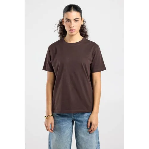 Dit donkerbruine dames T-shirt van America Today is een basic die vaak van pas komt. De effen kleur maakt het een rustige basis in je garderobe, terwijl de ronde hals en korte mouwen zorgen voor een tijdloze, casual uitstraling. Gemaakt van 100% katoen voelt de stof soepel en zacht aan op de huid, prettig voor elke dag.Fijne basic voor elke dag Effen donkerbruine kleur die makkelijk te combineren is met jeans, rok of pantalon Gemaakt van 100% katoen voor een zachte touch en prettig draagcomfort Ronde hals en rechte mouwen voor een klassieke pasvorm Basic design zonder zakken of opvallende details, geschikt als basislaag Los te dragen of onder een vest, blazer of overhemdStylen in jouw dagelijkse lookDit T-shirt past goed in een casual outfit met je favoriete jeans en sneakers. Voor een iets gekledere look combineer je het met een blazer en een nette broek. De donkerbruine kleur geeft je outfit een warme uitstraling en staat goed bij neutrale tinten zoals beige, zwart en crème.America Today als vertrouwde basic specialistAmerica Today staat bekend om comfortabele items met een ontspannen, alledaagse stijl. De collecties zijn geïnspireerd op de casual sfeer van Amerikaanse collegecampussen, met kleding die makkelijk draagt en lang in je kast blijft. Zo vul je je garderobe met basics waar je elke dag op kunt rekenen.Een rustige, veelzijdige basic die je outfits subtiel compleet maakt.