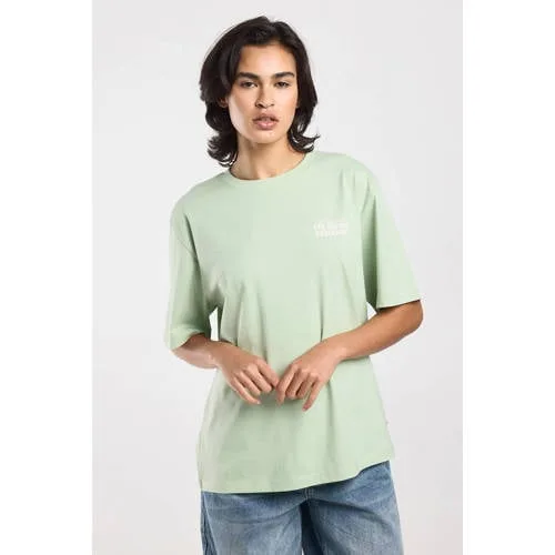 Ga voor een relaxte, stoere look met dit lichtgroene America Today dames T-shirt. Het shirt heeft een ronde hals, korte mouwen en een opvallende print op zowel de borst als de rug. Een fijne basic die je elke dag uit de kast pakt en die toch net even anders is door de backprint.Luchtig T-shirt met opvallende print Gemaakt van 100% katoen dat zacht aanvoelt op de huid Lichtgroene kleur die makkelijk combineert met je favoriete jeans of short Print op borst en rug voor een speels, grafisch accent Korte, rechte mouwen voor een casual uitstraling Ronde hals die comfortabel zit en mooi aansluit Onderdeel van de Rebel collectie, ideaal voor een eigentijdse stijlPerfect voor zonnige dagenDit T-shirt is ideaal voor het zomerseizoen. Draag het losjes op een denim short, of stop de voorkant nonchalant in een hoge jeans. De backprint komt mooi tot zijn recht als je je haar omhoog draagt of onder een open jas of overshirt.America Today, geïnspireerd op het campuslevenAmerica Today haalt zijn inspiratie uit het Amerikaanse campusleven en combineert dat met comfort en toegankelijk design. De collectie draait om alledaagse favorieten die je makkelijk styled en vaak draagt. Met dit T-shirt voeg je een fris, grafisch item toe aan je garderobe dat past bij de ontspannen stijl van het merk.Een luchtige basic met karakter, fijn voor elke dag in het zomerseizoen.