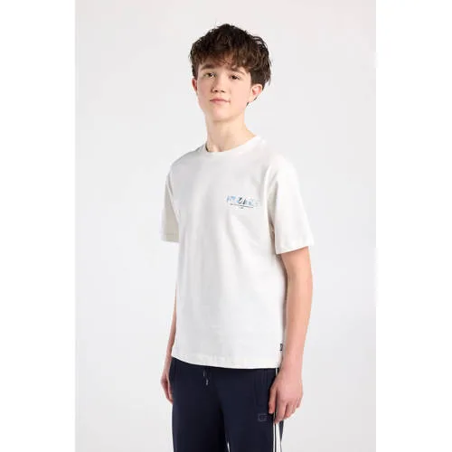 Voor een ontspannen, dagelijkse look is het America Today Ephron Jr T-shirt een veelzijdige basic met een grafische twist. Het T-shirt heeft een relaxed fit en een ronde hals, waardoor het net iets ruimer valt en makkelijk over het hoofd gaat. Aan de voorkant oogt het rustig en eenvoudig, terwijl de opvallende backprint voor een moderne en eigentijdse uitstraling zorgt. Gemaakt van 100% katoen voelt de stof soepel aan en is het shirt geschikt voor elke dag.Handige details van dit T-shirt Relaxed fit: valt iets ruimer voor extra bewegingsvrijheid tijdens spelen en sporten Klassieke ronde hals: makkelijk aan en uit te trekken Artworkprint met backprint: rustige voorkant en een opvallende achterkant Korte mouwen: geschikt voor warmere dagen of onder een vest of hoodie Gemaakt van 100% katoen: voelt zacht aan op de huid en is eenvoudig te wassen Kleur wit: goed te combineren met jeans, shorts of joggersMakkelijk combineren voor elke dagDit jongens T-shirt past bij veel momenten, van schooldag tot speelafspraak. Combineer het met een spijkerbroek voor een casual outfit of met een korte broek in de zomer. Door de backprint blijft de outfit interessant, ook als er een overhemd of open hoodie overheen wordt gedragen.America Today voor de nieuwe generatieAmerica Today staat bekend om casual kleding geïnspireerd op de Amerikaanse college stijl. De collecties zijn ontworpen voor dagelijks gebruik, met aandacht voor pasvorm, draaggemak en sterke basics die je makkelijk combineert. Zo bouw je stap voor stap een garderobe op met items die je vaak draagt.Een relaxed T-shirt dat eenvoudig te stylen is voor elke dag.