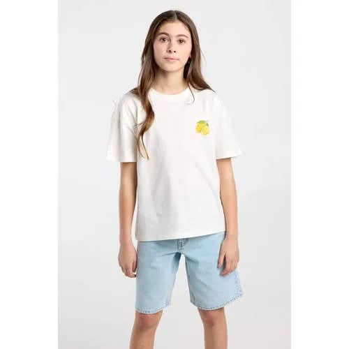 Voor een relaxte, casual look is dit wit meisjes T-shirt met print van America Today een praktische basic met opvallende details. Het shirt heeft een ronde hals en korte mouwen en is gemaakt van 100% katoen, wat zacht en soepel aanvoelt op de huid. De print op de borst en de grotere backprint op de rug geven het T-shirt een opvallende uitstraling die goed past bij een urban stijl.Kenmerken van het Ellinor Jr T-shirt Gemaakt van 100% katoen voor een zachte touch en prettig draagcomfort Geprint artwork op de borst voor een subtiel accent aan de voorkant Backprint op de rug voor een opvallend detail wanneer zij wegloopt of fietst Korte mouwen en rechte mouwinzet, fijn voor school, vrije tijd en vakantie Ronde hals die makkelijk over het hoofd gaat en mooi aansluit Geschikt voor schoolkind en tiener, uit de urban collectie van America TodayMakkelijk te combineren in elke dagDit T-shirt past goed bij een spijkerbroek, cargobroek of een korte broek. Ideaal voor naar school, de stad in of een ontspannen weekend. Een paar sneakers eronder en de outfit is compleet.America Today stijl voor jong publiekAmerica Today maakt casual kleding met een herkenbare stijl. De kinderlijn sluit aan op de stijlen uit de volwassen collectie, maar dan speciaal afgestemd op het dagelijkse leven van kinderen en tieners. Zo kies je voor kleding die er modern uitziet en elke dag weer prettig draagt.Een praktische basic met opvallende details voor al haar dagelijkse momenten.