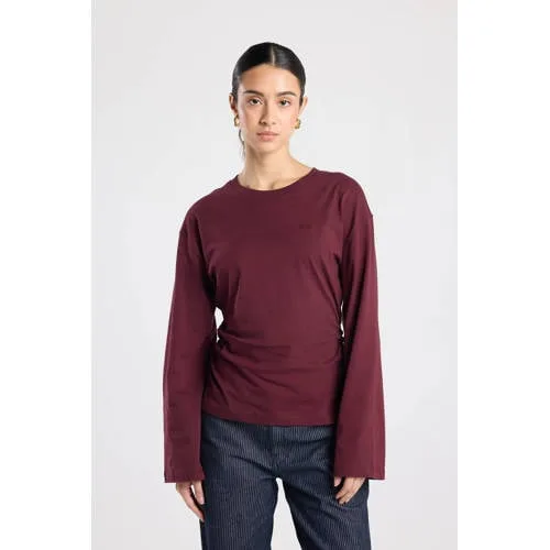 Deze top van America Today heeft rechte mouwen en een ronde hals. De top is gemaakt van katoen, heeft plooien en een split voor extra detail.