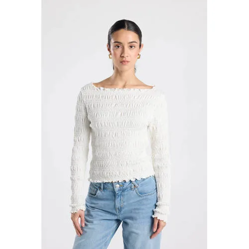 Deze top van America Today heeft rechte mouwen en een boothals. Gemaakt van 100% katoen. Voelt zacht aan en draagt prettig. Combineert makkelijk met jouw favoriete items.