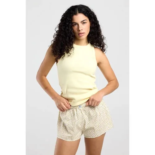 Deze lichtgele mouwloze dames top van America Today is een basic voor zonnige dagen. De top heeft een ronde hals en is gemaakt van een comfortabele, geribbelde stof die soepel met je meebeweegt. Door de effen kleur is dit een item dat je makkelijk combineert, of je het nu draagt op een jeans, korte broek of onder een open blouse.Details die je elke dag wilt dragen Mouwloos model, ideaal voor warme dagen of onder een vest Ronde hals voor een rustige, tijdloze uitstraling Geribbelde stof die licht aansluit en een speels effect geeft Effen lichtgele kleur, goed te combineren met basic en denim items Gemaakt van 95% katoen en 5% elasthaan voor een zachte touch en extra bewegingsvrijheidVeelzijdig in je zomer garderobeDeze top past goed in een dagelijkse zomerlook. Draag de Gia top solo op een denim short met sneakers voor een casual outfit, of combineer met een luchtige broek en sandalen voor een rustige, verzorgde set. Het aansluitende, geribbelde materiaal maakt de top ook geschikt om onder een overhemd of jasje te dragen zonder dat het gaat tekenen.America Today stijlAmerica Today staat bekend om casual kleding met een eigentijdse uitstraling, geïnspireerd op de ontspannen campusstijl. De collecties combineren comfortabele materialen met toegankelijke ontwerpen die makkelijk in het dagelijks leven passen. Met deze top haal je een basisitem in huis dat goed past bij deze moderne, relaxte stijl.Een praktische basic die je zo het hele seizoen door blijft pakken.