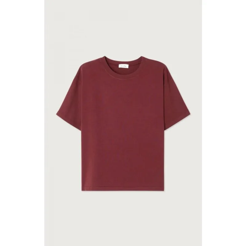 Het Fizvalley-T-shirt voor dames is een is een iconisch item in de American Vintage-garderobe. Met zijn wat wijdere rechte pasvorm, ronde hals en korte mouwen heeft het een authentieke, tijdloze stijl. Het is gemaakt van dikke, gladde en compacte jersey en voelt gestructureerd aan met een vintage uitstraling. Het is verkrijgbaar in een breed scala aan kleuren en past in zowat elke stijl. Je draagt het op zichzelf of in laagjes onder een hemd of een sweater.Recht T-shirtKorte mouwenRonde halsDik, glad katoenCompact materiaalOversized. Wordt los gedragen, neem je gebruikelijke maat.kleur: Bordeaux materiaal: 100% katoen Het model is 175 cm lang, heeft maat S