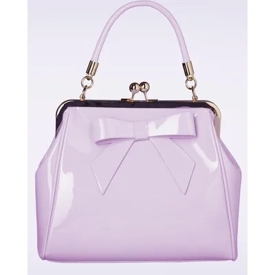 “Classic closure, endless charm.” Deze beauty heeft een opvallende goudkleurige metalen klipsluiting voor een echte vintage look. Uitgevoerd in licht lila lakleder, afgewerkt met een schattige strik. Ze wordt bovendien geleverd met een los, verstelbaar hengsel zodat je haar ook speels om je schouder kunt hangen. * Medium sized * Klipsluiting * Binnenvak met 3 extra vakjes, waarvan 1 met rits * Afneembaar hengsel * Kan crossbody gedragen worden * Volledig gevoerd * Groot genoeg voor je telefoon, sleutels, en portemonnee
