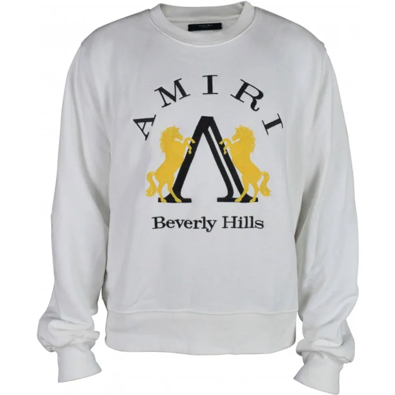 Wit AMIRI-sweatshirt met logo.Zwart 'AMIRI'-logo op de voorkant.Ronde hals.Geborduurd 'Beverly Hills' en paarden.100% katoen.