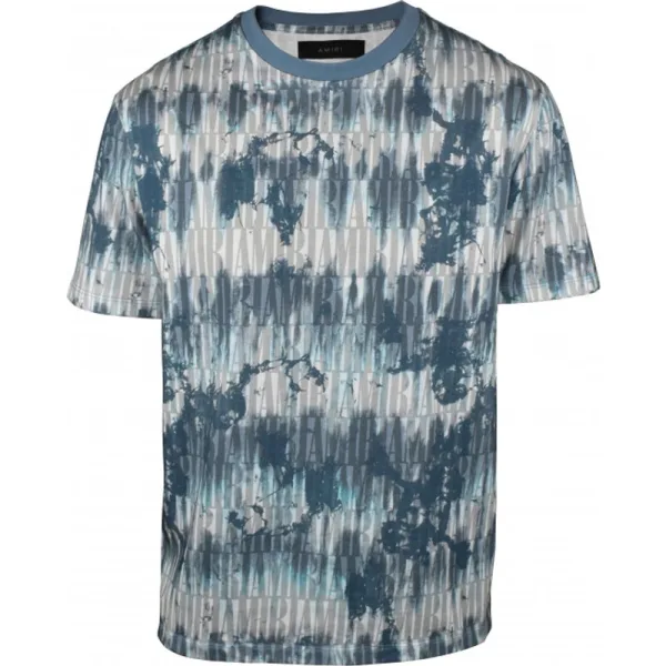 Amiri T-shirt van katoen met blauwe en witte tie-and-dye print.Tone-on-tone monogramlogo overal.Korte mouwen.Ronde kraag.Gemaakt in Italië.